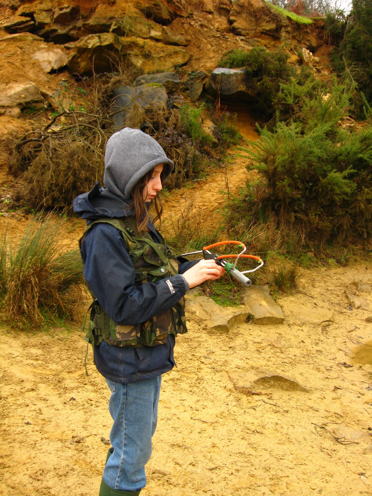 Plant science took a back seat on Wednesday as instead we headed off to a local nature reserve with two other families. Trudging through the rain and equipped with fishing net, catapult, saw, hammer, and crazed spaniel, I guess, we must have looked a strange bunch.